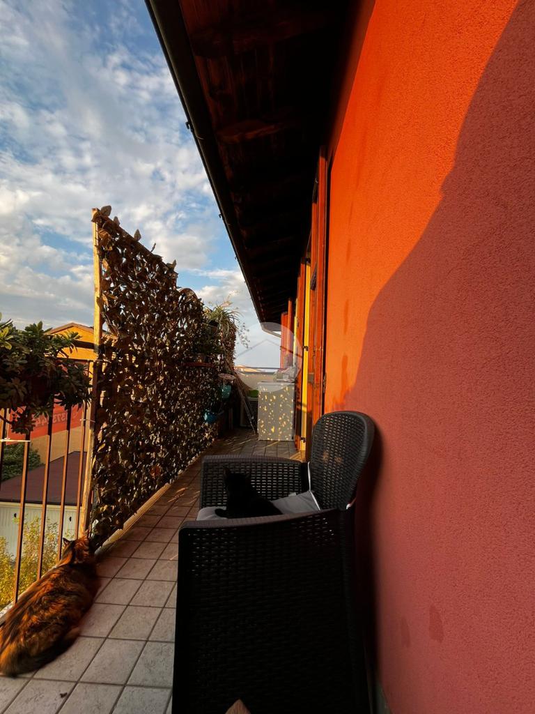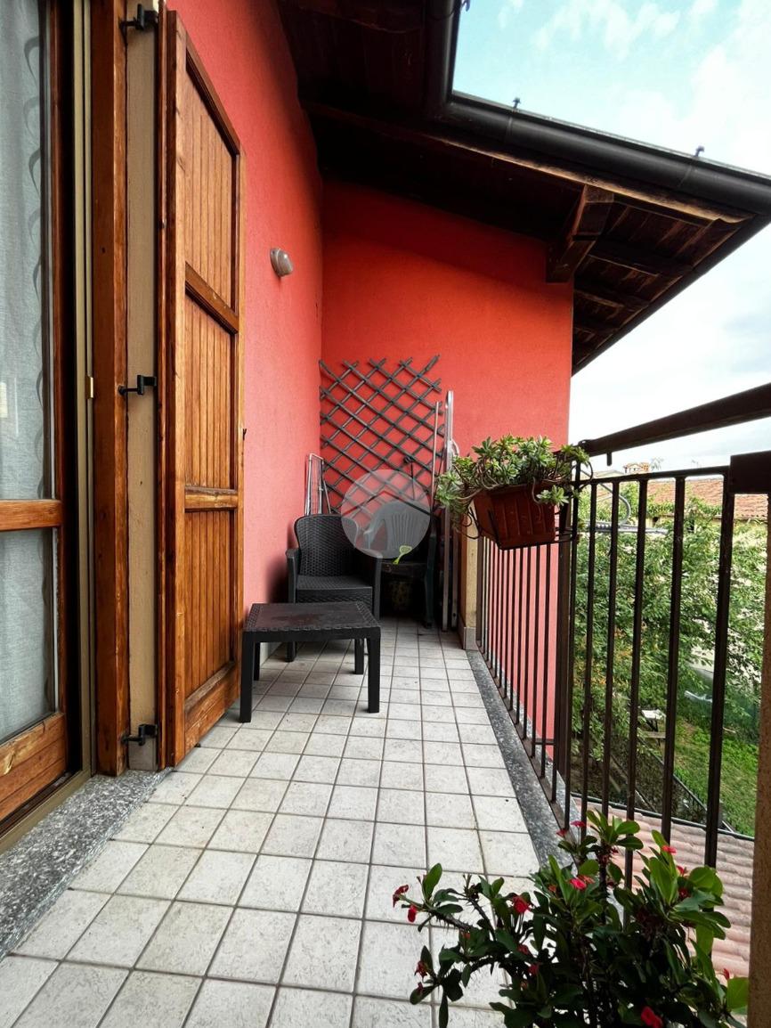 Infissi in legno con doppi vetri, ante esterne in legno con zanzariere, cappotto e caldaia esterna, sul balcone.