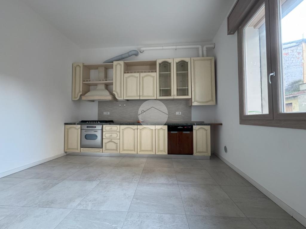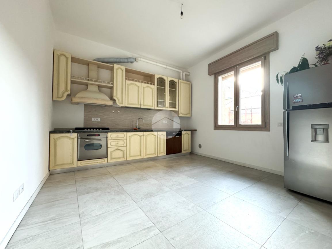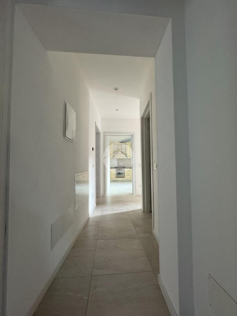 L'appartamento è composto da ingresso, grande cucina abitabile, soggiorno, disimpegno, due camere di buone metrature e ampio bagno con doccia con piatto 110 cm e spazio per zona lavatrice/asciugatrice.