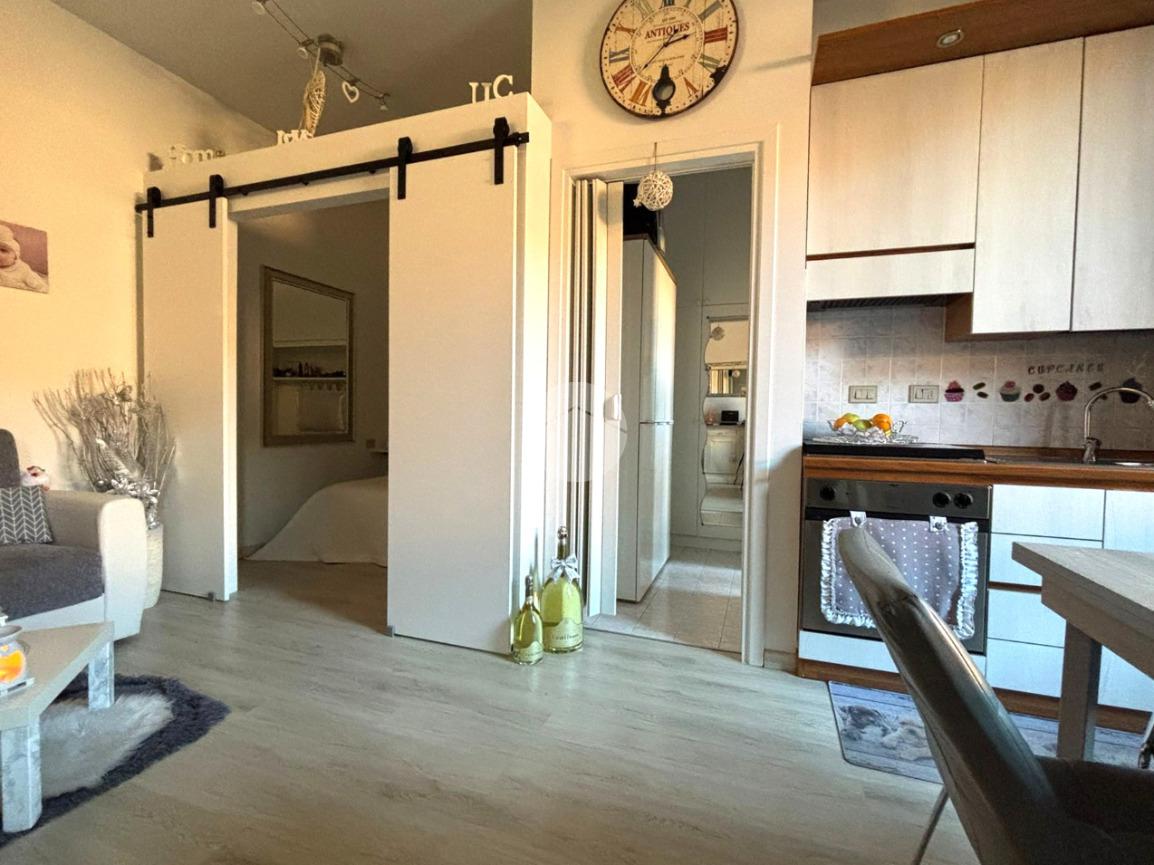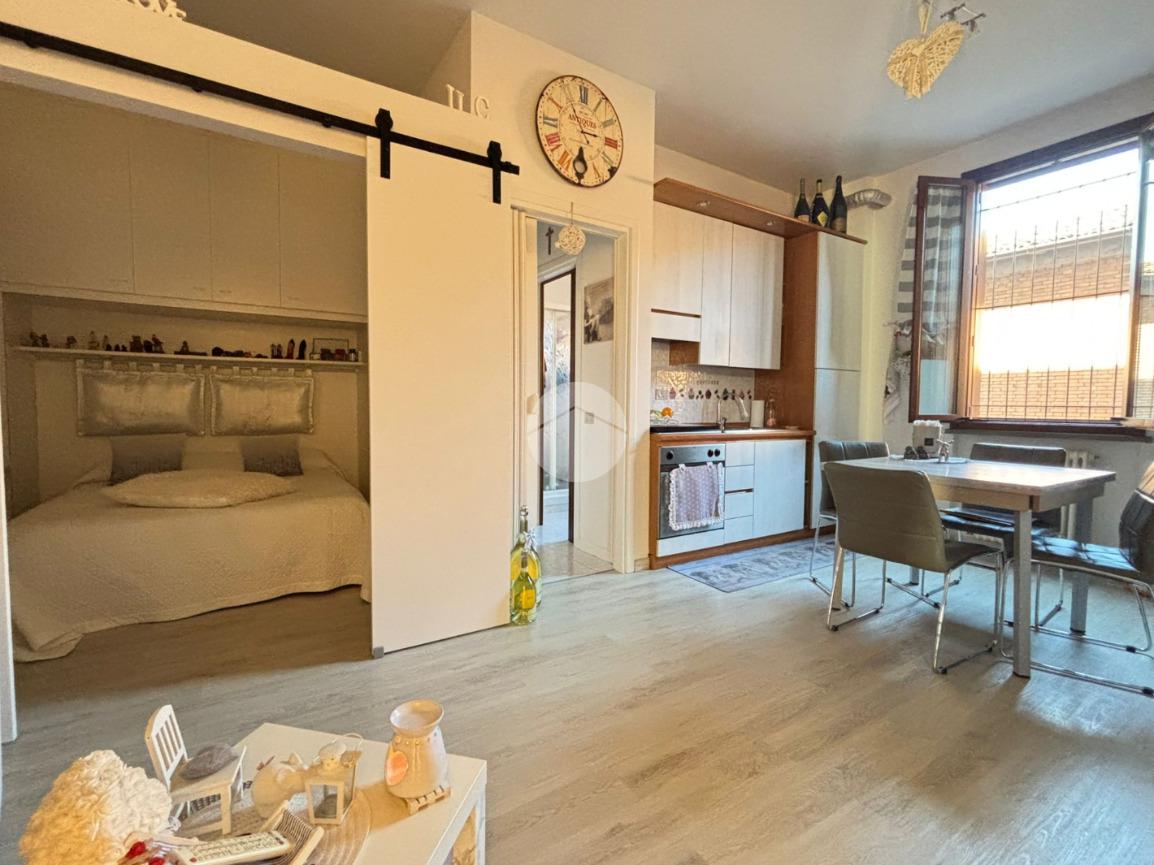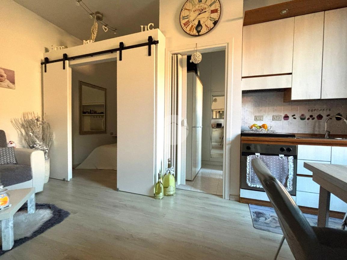 L’appartamento, pur essendo un monolocale, presenta spazi ben distribuiti: infatti è stato possibile ricavare una “zona notte” con un divisorio in cartongesso.