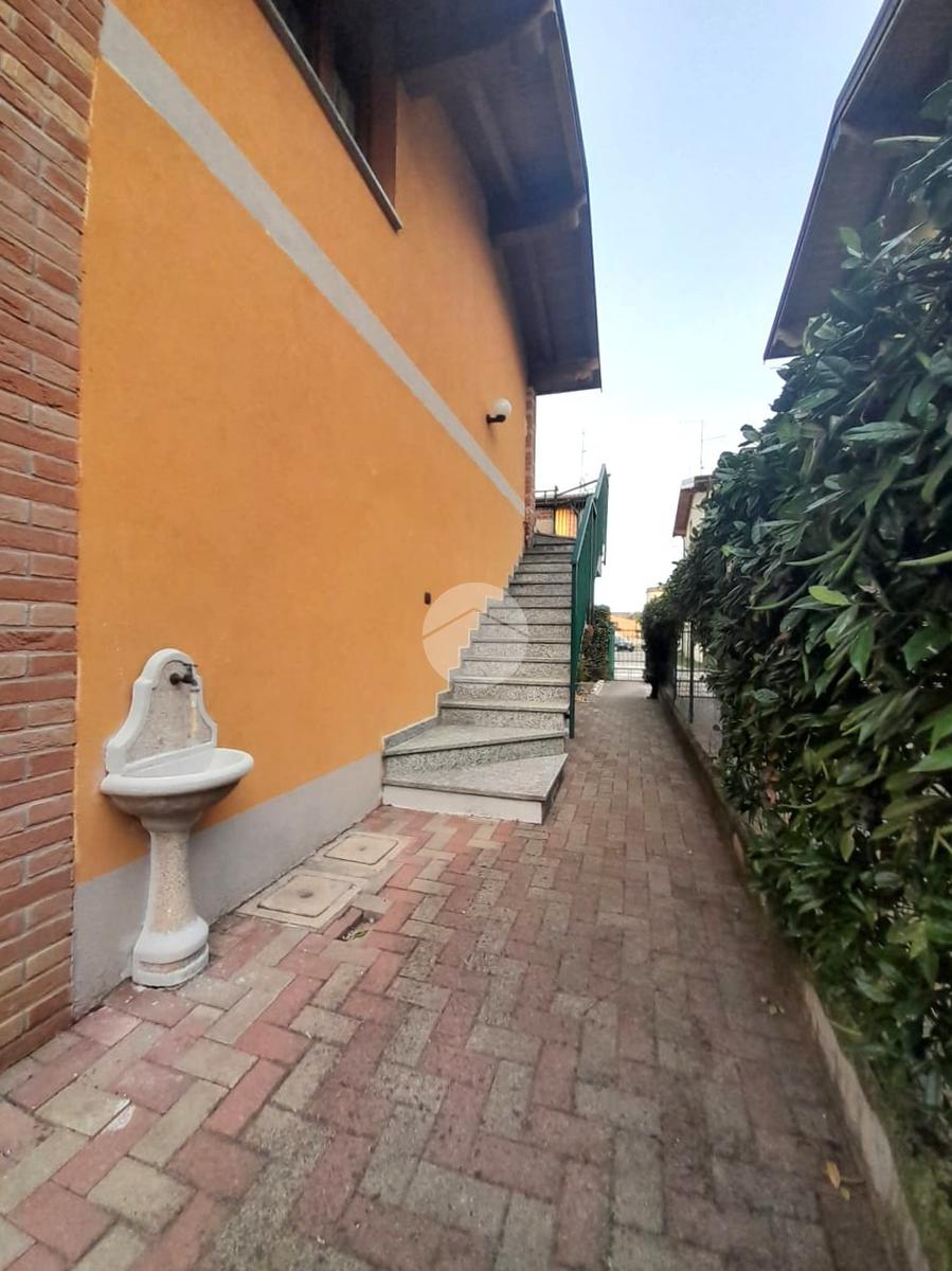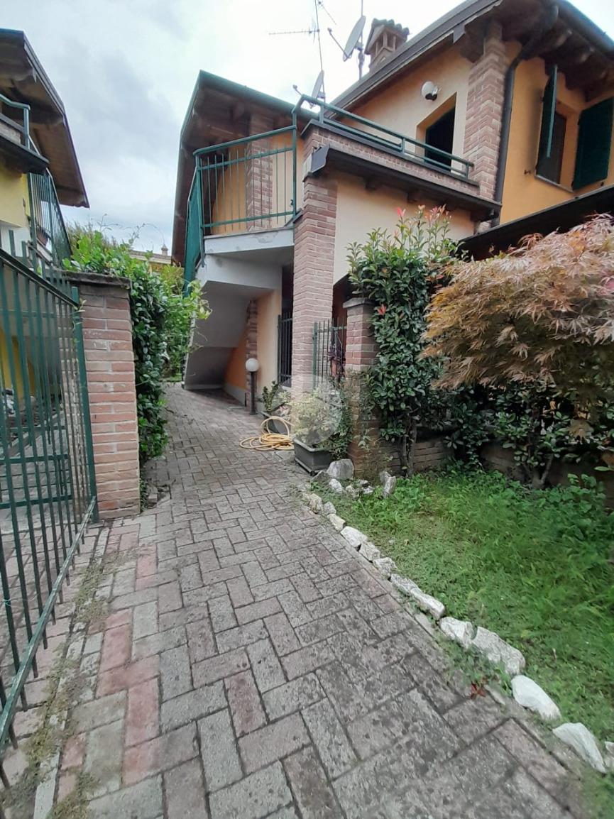 L'appartamento è composto da cortile privato e giardinetto al piano terra e scala esterna per accedere al primo piano, con un terrazzo all'ingresso dell'abitazione.