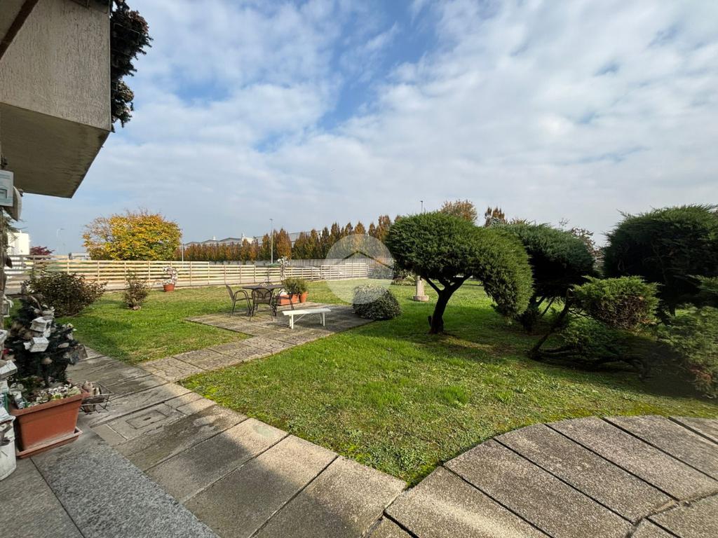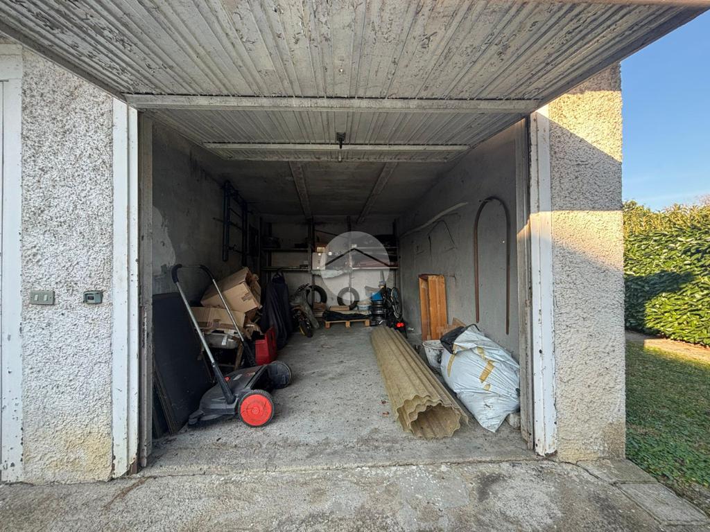 Gli spazi accessori sono uno dei punti di forza di questa proprietà: al piano terra, nel corpo centrale sotto l’appartamento, troviamo una cantina, una lavanderia separata e un box auto, mentre all’esterno, nel cortile, sono presenti un secondo box e un serraglio, utile per il ricovero di moto, biciclette o attrezzature.